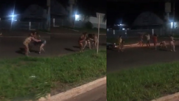 De acordo com vídeo que circula nas redes sociais, as suspeitas estavam armadas com pedaços de pau, facadas e pedras e partiram para cima dela e do namorado. A confusão foi generalizada, no meio da rua.