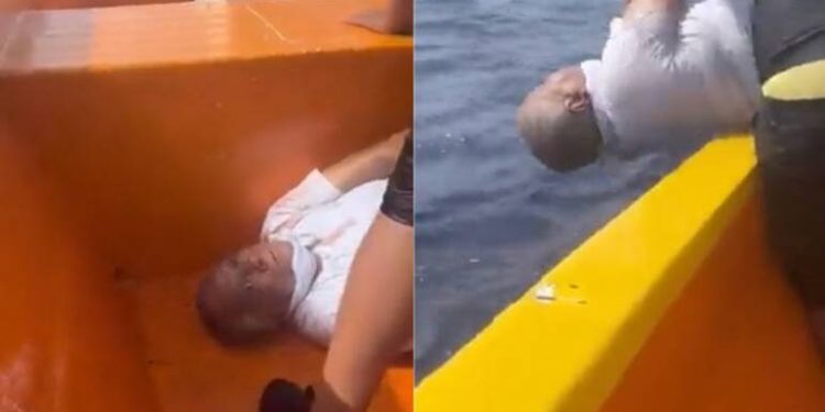 Nas imagens, ele é filmado deitado com os pés e mãos amarrados no assoalho do barco. Os homens o levantam e o lançam ao mar. O corpo dele nunca foi encontrado.