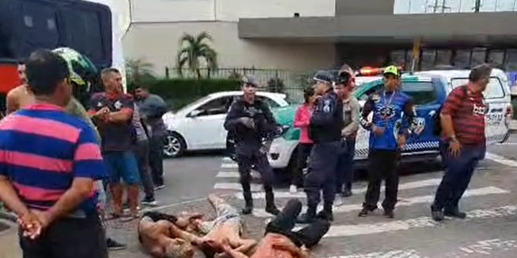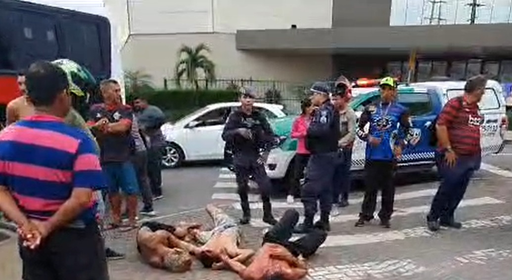 Depois da porrada no poste, eles levaram uma surra do povo. A vítima do assalto seria um motorista de app que vinha no carro com os suspeitos.