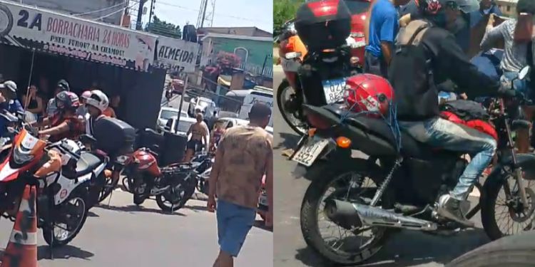 Logo o filho chegou e, revoltado, gritou que a situação não ficaria assim: “Tu vai morrer. Eu vou te matar, c@r@lh0”, dizia ele para o motociclista que foi protegido por colegas da categoria.