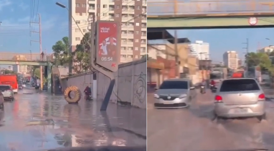 Internautas registraram o momento e reclamaram da Águas de Manaus. Além da falta de água o trânsito ficou ruim no local. Ainda não se sabe o motivo do rompimento.