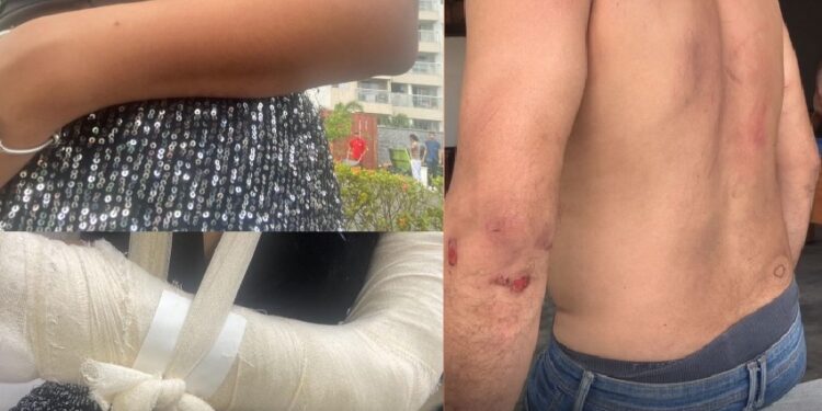 É possível ver a correria e os gritos, mas não se sabe como tudo isso começou. As imagens de um estudante ferido também foram compartilhadas pelo próprio grupo, que registrou um boletim de ocorrência na delegacia. O jovem foi identificado como Matheus dos Santos Rodrigues, a moça com o braço quebrado seria na morada dele.