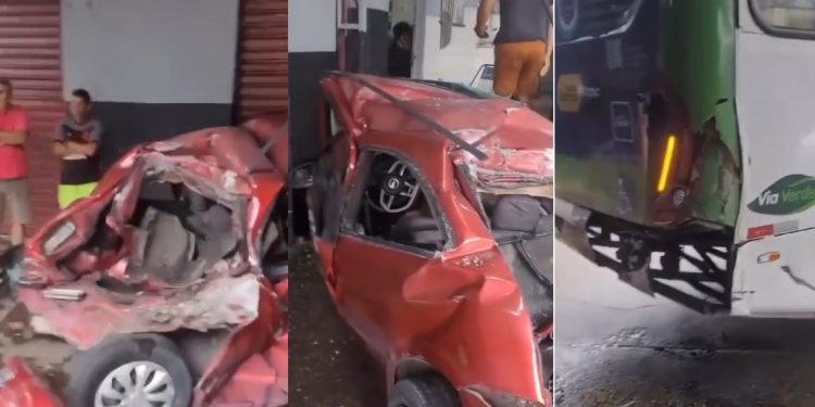 MANAUS – Um ônibus da Via Verde, da linha 219, acertou um carro e uma casa na rua Jota, no Alvorada, na tarde deste domingo (21), em Manaus. De acordo com a página Lirio do Vale 1000 Grau, ele foi vítima de uma tentativa de assalto.