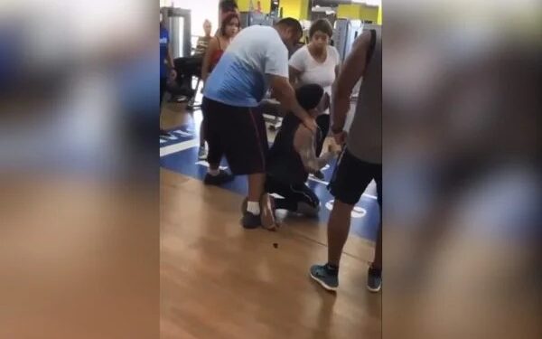 Vídeos que circulam nas redes sociais mostram o homem de joelhos com uma pessoa o segurando pelos ombros, enquanto uma mulher acerta tapas no rosto dele. Em outro parte do vídeo, policiais militares conversam com as pessoas que estavam na academia.