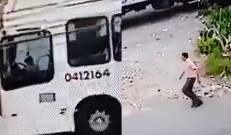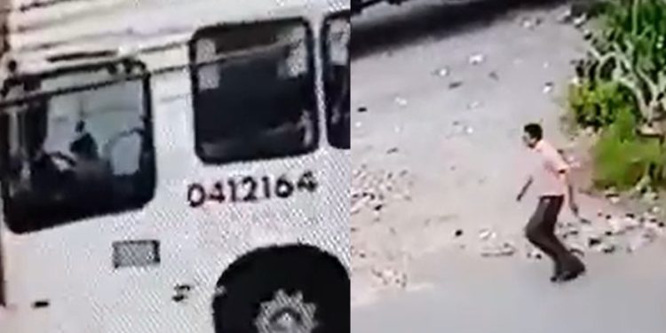MANAUS – Foi divulgado hoje o vídeo do momento em que duas crianças soltam o freio do ônibus na avenida Hibisco, bairro Nova Vitória, na zona leste de Manaus.