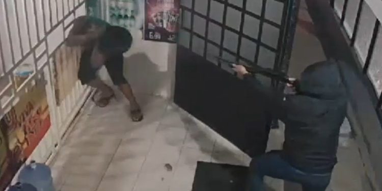 BRASIL – Um vídeo inédito mostra a morte de um homem na última terça-feira (11), na Rua Arizona, em Penedo, Alagoas, onde ele foi surpreendido por um pistoleiro dentro da distribuidora. Ebson da Silva Santos, de 35 anos, ainda tentou se defender com as mãos das balas.