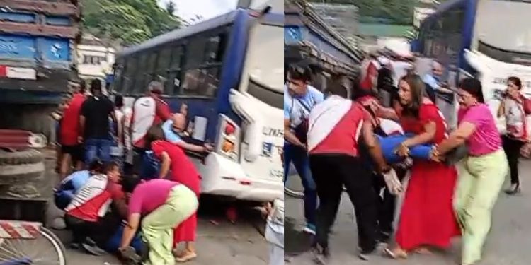 Cinco morreram ontem a mais dois hoje. O vídeo do momento em que a tragédia ocorre está nas redes sociais e mostra que o veículo desceu a ladeira sobre as pessoas.