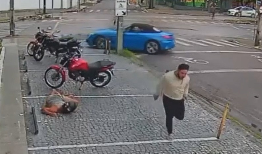 BRASIL – Um motorista de BMW Cabriolet azul matou um bandido que tentou roubar o carro dele no domingo (23). Rápido no gatilho, ele atirou em dois criminosos. Um deles tombou na hora.