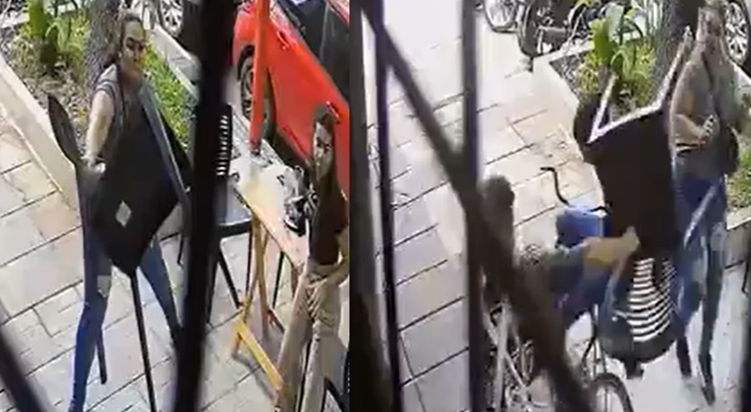 ARGENTINA – Uma mulher foi corajosa e acertou uma cadeirada num suspeito de assalto em Chaco, na Argentina. O home havia acabado de atacar a amiga dela.