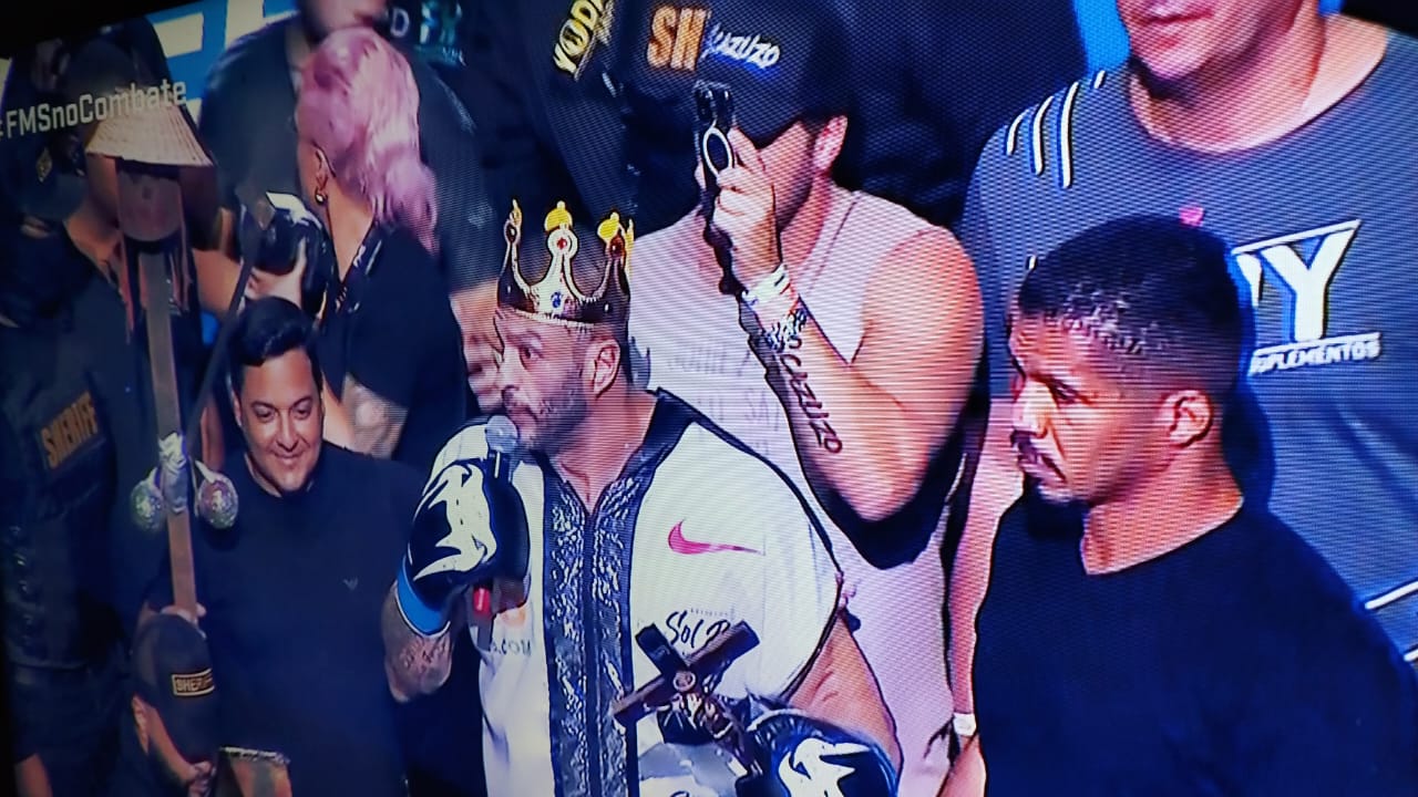 Popó e Bambam se enfrentaram no ringue após muitas provocações nas redes sociais — e durante a pesagem para a luta. “Quando minha mão te encostar, qualquer mão, ‘cê’ vai cair duro, que eu vou te nocautear”, prometeu Bambam, antes do confronto. “A minha vai chegar primeiro”, revidou Popó.