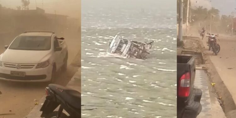 Árvores caídas, carros danificados e casas destelhadas também foram registradas na cidade. A ventania durou entre 30 a 40 minutos.