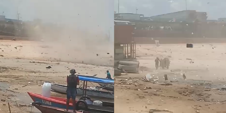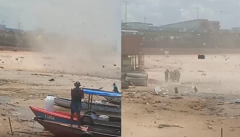 MANAUS (AM) – Trabalhadores e populares que estavam na Manaus Moderna, no Centro de Manaus, na tarde deste sábado (21), foram surpreendidos com um fenômeno inusitado em dia quente como de costume.