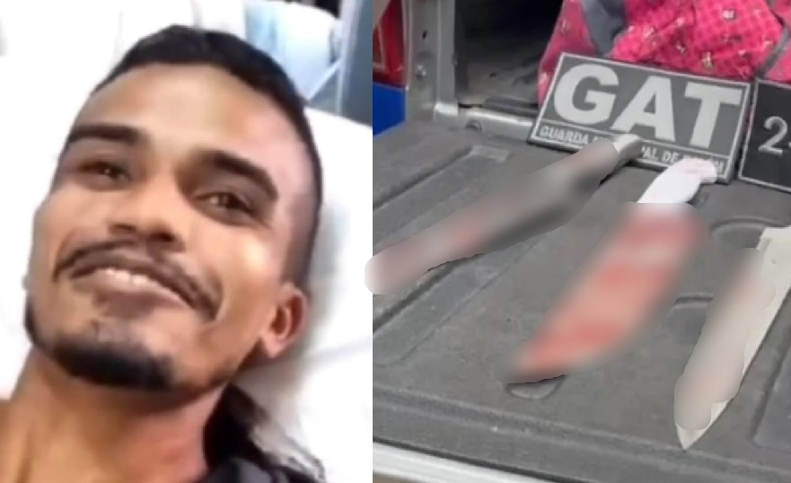 Ao ser detido, no entanto, ele disse que estava feliz. “Hoje eu tive a felicidade de tá vendendo faca e encontrei ele na rua. Eu tava tão feliz que eu dei uma facada e quase eu atolo o meu próprio braço, mas é isso ai… o dia mais feliz da vida de um homem é hoje”, revelou o suspeito, enquanto recebia atendimento porque também se feriu.
