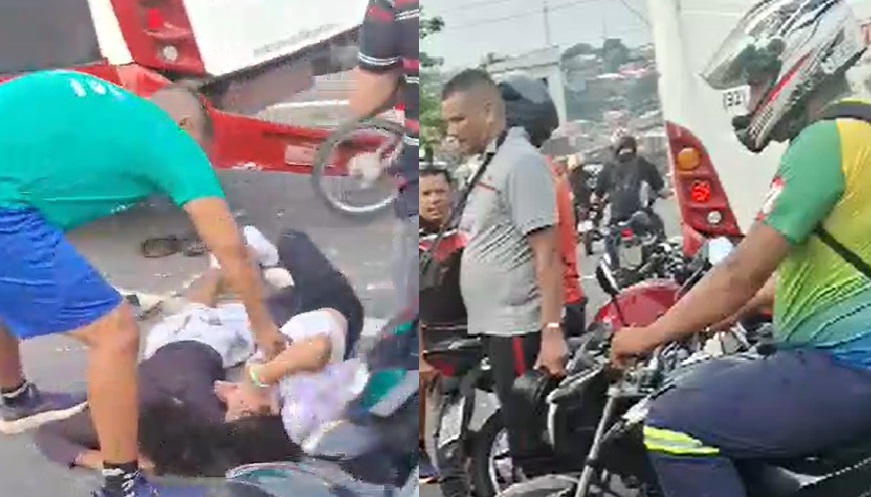 MANAUS – Dois jovens que seriam adolescentes acertaram a traseira de um micro-ônibus nesta quarta-feira (13), na Avenida das Torres, sentido bairro/Centro Os dois ficaram no chão e a moto POP em que vinham ainda arrancou o para-choque do veículo.