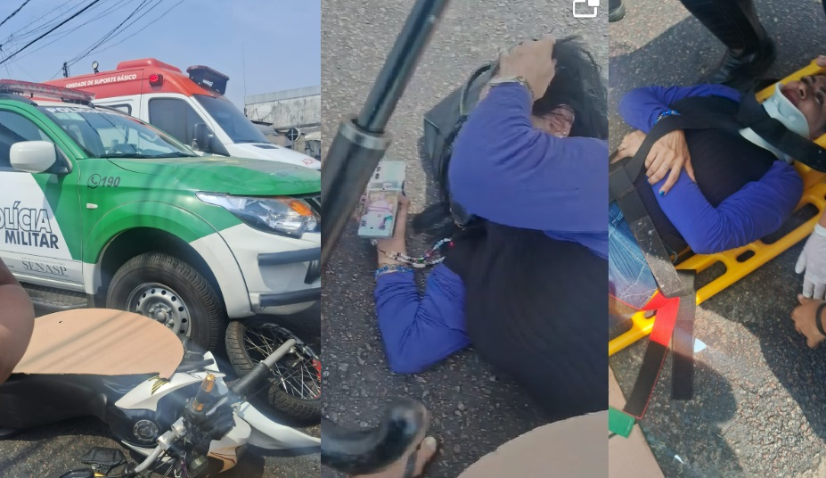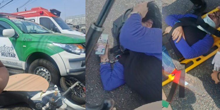 MANAUS – Um casal ficou ferido no bairro São Jorge, nesta segunda-feira (23), na Zona Oeste de Manaus, depois da moto em que eles vinham ser atingida por uma viatura da PM. Os dois ficaram no chão esperando atendimento, enquanto a moto ficou sob a roda da viatura. Testemunhas dizem que o carro da PM vinha em alta velocidade e teria invadido a preferência das vítimas. Não se sabe até que ponto a viatura estava atrás de bandidos. Até agora, oi estado de saúde do casal não foi atualizado. E nem os nomes dos envolvidos foi revelado. O SAMU foi ao local e resgatou os dois feridos. O caso será levado para a PM, que deverá prestar apoio às vítimas. O trânsito no local já foi liberado.