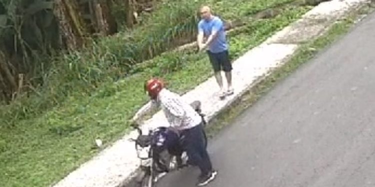 O ladrão subiu na moto e saiu em disparada para não ser morto pelo cidadão que ele iria assaltar, tudo filmado por câmera e registrado por um cachorrinho que aparee nas imagens. O bandido ainda faz de conta que estava armado, mas quando viu a arma de verdade, deu no pé.