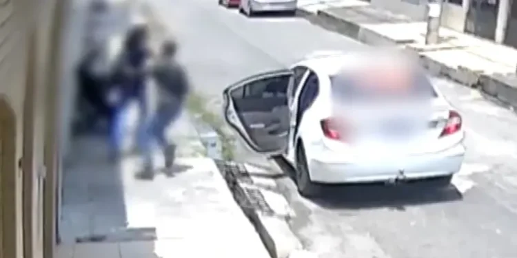 Nas imagens, a garota está caminhando na via quando surge um carro Honda Civic branco de placas OTK3H83. Um dos homens sai e corre atrás dela, a puxando. Um vizinho que estava do outro lado da calçada vê a situação e corre, fazendo o sequestrador ir embora.