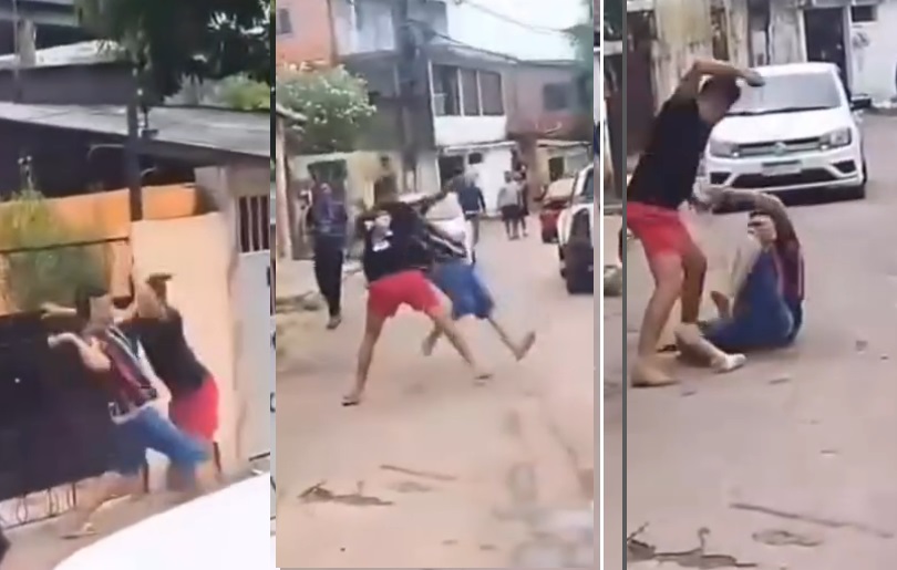 Vizinhos reconheceram os brigões, e tiraram onda na página do bairro. “O cara podendo ta em casa de boa, ta levando tapa de fresco de manhã cedo”, disse um.