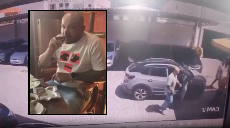 O homem chega a levantar os braços e tenta argumentar, mas logo em seguida leva os tiros. Ele é acertado na cabeça e o pistoleiro foge logo em seguida. A pessoa que estava com a vítima não se feriu.