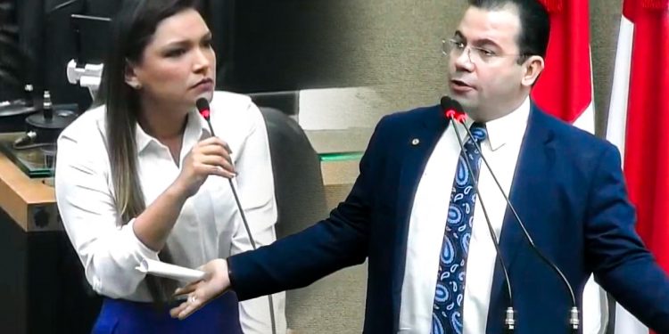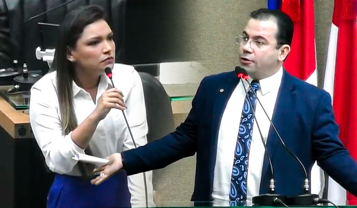 Durante a sessão da Assembleia Legislativa do Amazonas (Aleam), na manhã desta quinta-feira, 20/4, a deputada Joana Darc (União Brasil) e o deputado Wilker Barreto (Cidadania) trocaram farpas por causa de bandeiras levantadas por ambas as partes.