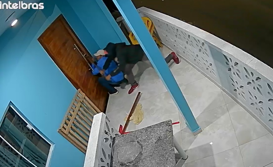 Nem as câmeras intimidaram os criminosos, que ainda chegaram de Kwid, de placas PHL-3014, e foram embora de boa.