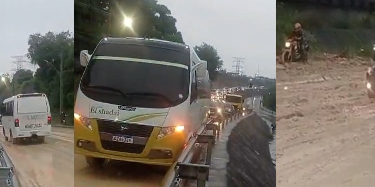 Cerros estão atolando no local. O trânsito foi redirecionado para a entrada da baixada fluminense. Esse desvio foi montado para minimizar os transtornos causados aos motoristas e manter a fluidez do trânsito na área afetada.