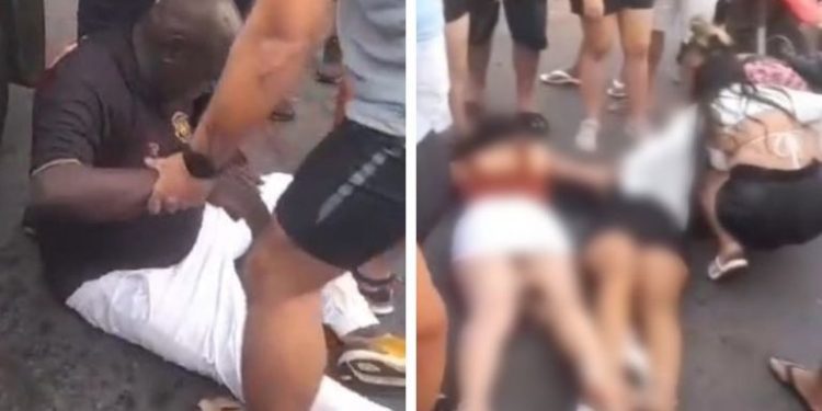Nas filmagens, Xuxa aparece caído na avenida, enquanto as mulheres estão estendidas no chão. Os torcedores tentam ajudar as vítimas.