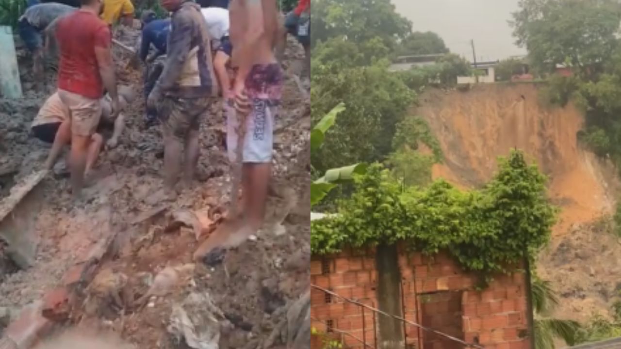 MANAUS (AM) – Na comunidade Fazendinha, na zona norte de Manaus, um desbarrancamento de terra atingiu quatro casas e deixou 6 pessoas soterradas na tarde desta quarta-feira (19).