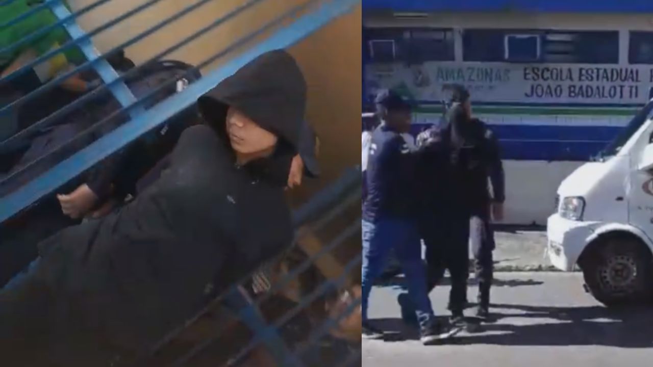 A Guarda Municipal conteve o estudante e o retirou da escola. Na saída, ele foi hostilizado pelos pais dos alunos.