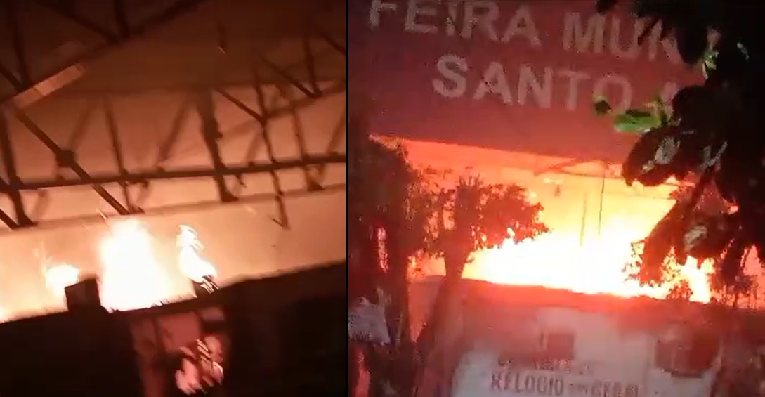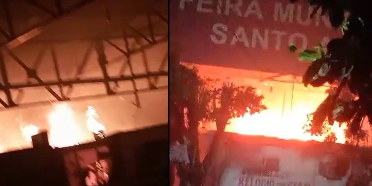 MANAUS – Um incêndio na madrugada desta segunda-feira (4) queimou pelo menos 15 boxes na Feira do Santo Antônio, que fica ao lado da Câmara Municipal de Manaus. Trabalhadores acionaram os bombeiros, que controlaram as chamas.