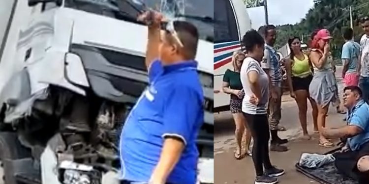 AMAZONAS – De acordo com as primeiras informações 11 pessoas estão feridas após o grave acidente na BR-174, que liga Manaus a Presidente Figueiredo, neste domingo (7). Um homem foi filmado embaixo do micro-ônibus, que foi atingido por uma carreta.