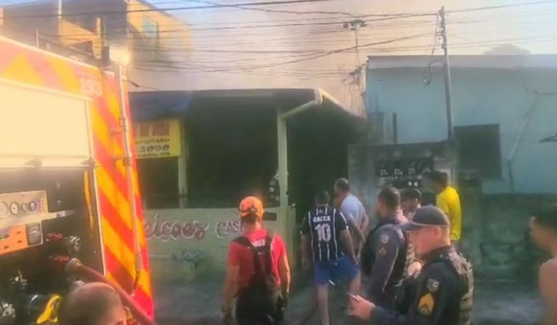O Corpo de Bombeiros foi acionado e informações preliminares é de que o fogo iniciou em um depósito e depois se alastrou.