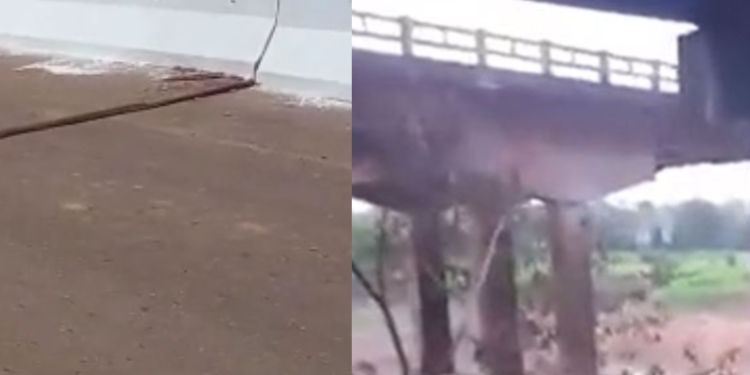 Conforme vídeos postados nas redes sociais, moradores gravaram o desespero quando viram a ponte caindo. “A ponte acabou de cair, naquele trecho ali mano, graças a Deus ninguém atravessou lá. Um ‘poeiral’ doido mano”, disse um homem.