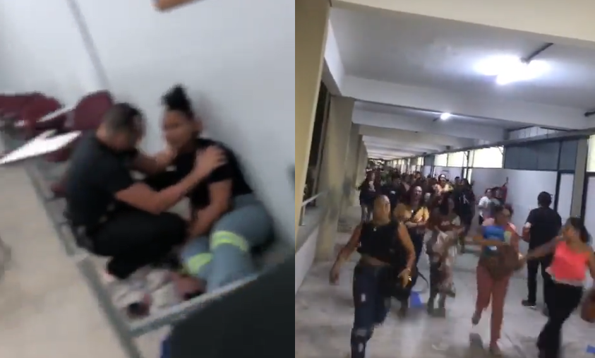 Vídeos mostram a correria nos corredores e algumas pessoas se trancando nas salas, colocando cadeiras nas portas. Uma estudante chegou a passar mal.