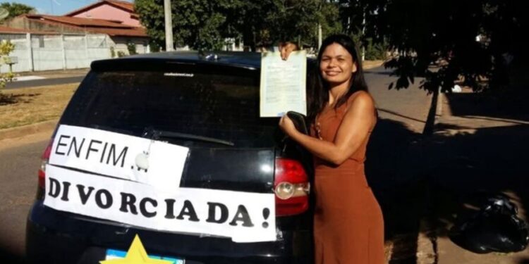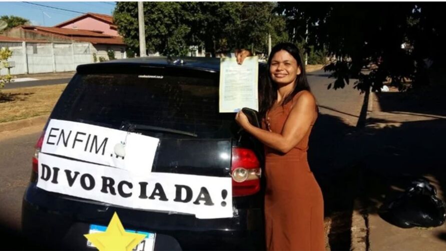 Após a consolidação do divórcio, ela decidiu comemorar o fim do seu casamento de uma forma diferente: colando uma placa em seu carro com a frase: “enfim, divorciada”.