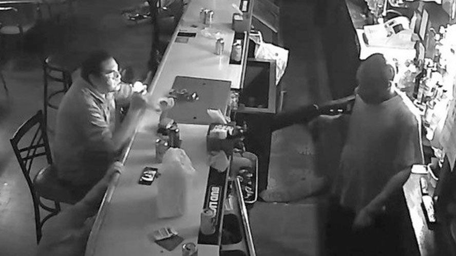 Um homem armado com escopeta anunciou assalto e quase todos os clientes foram para o chão, obedecendo ordens do criminoso. Exceto um, que permaneceu sentado ao balcão.