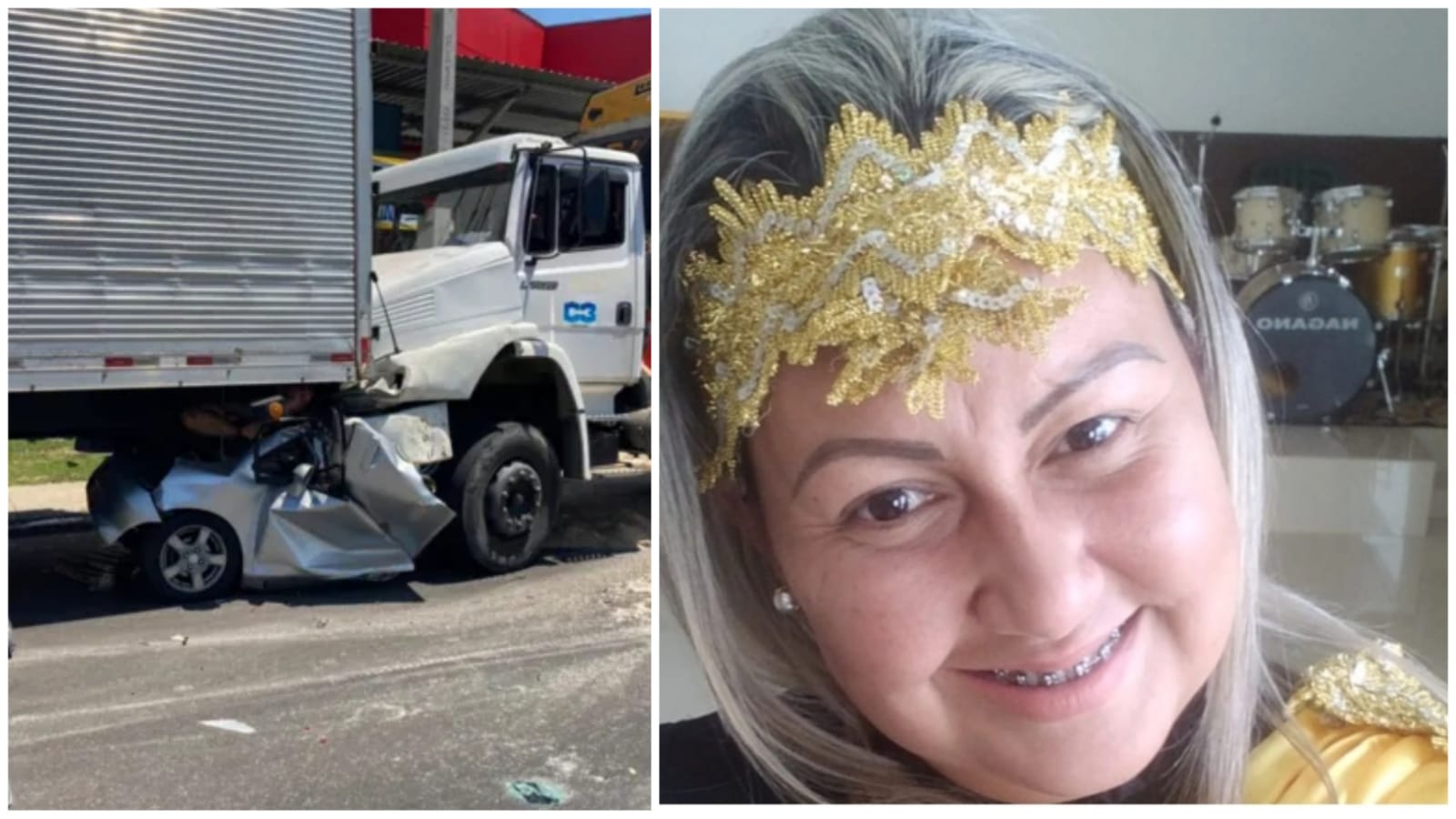 Suzy e Maria estavam em um carro modelo Honda Fit de placa JXY-7044 paradas no semáforo quando um caminhão atingiu o veículo que ficou completamente esmagado.
