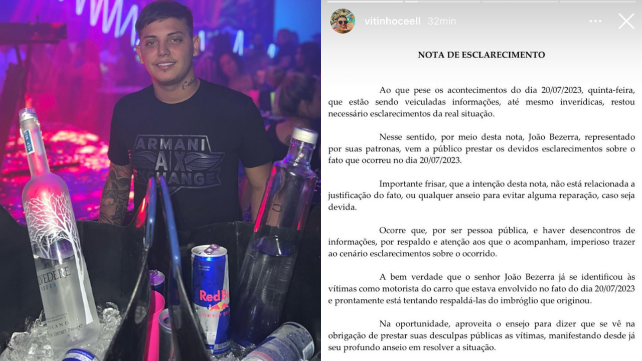 Em seus stories, ele publicou um documento, escrito por suas advogadas, onde começa, novamente, afirmando que as notícias veiculadas na mídia, de que ele teria atropelado um casal de motociclista são inverídicas, mas por fim termina a nota confessando que foi ele quem causou o acidente, ao entrar na contramão em alta velocidade, atingir o casal de frente e fugir sem prestar socorro, como mostra o vídeo no fim da matéria.
