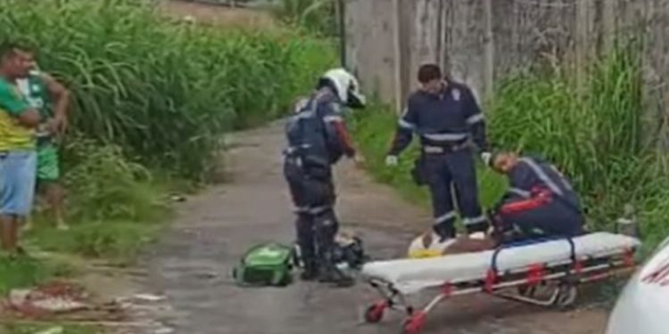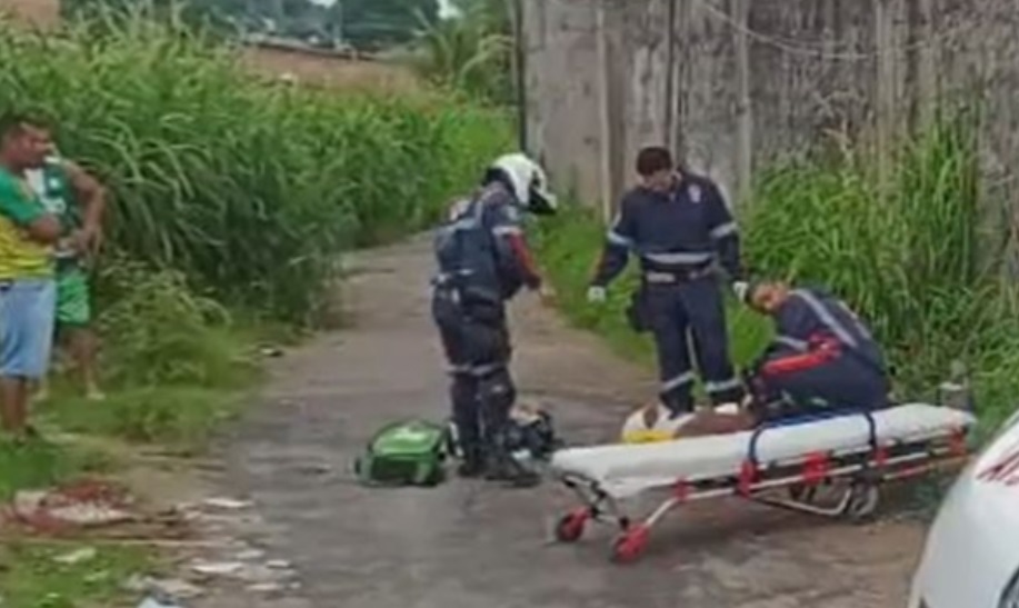 Enquanto era socorrida, a esposa disse, nesta nesta segunda-feira (13), que o marido surtou e tentou tirar a vida dela. Ele acabou detido pelo povo, esfaqueado e vai responder pela tentativa de homicídio.