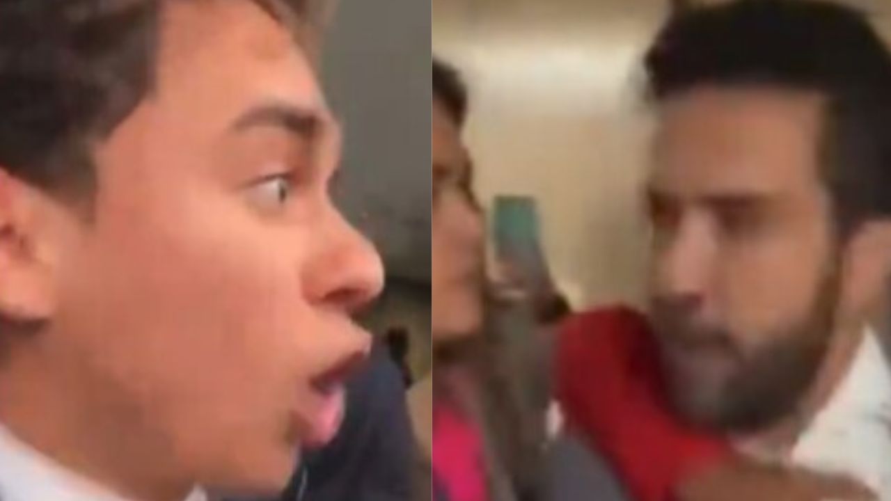 “Você é um frouxo, você é um mentiroso. Seu m****. Vamos lá fora então, quero ver”, disse Nikolas. “Vamos só nós dois. Tira a gangue, tira a gangue, tira a gangue. Vagabundo, boiola, tomar no seu c*, Bandido. É só nós dois. Vem cá”, respondeu Janones.