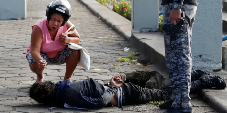 “Tenha misericórdia de mim. Você quer perder a sua vida para você ter paz, Jonathan? Em nome de Jesus, meu filho, para com isso e vai viver”, implora a mulher, desesperada ao ver o neto imobilizado e deitado no chão com policiais ao lado.