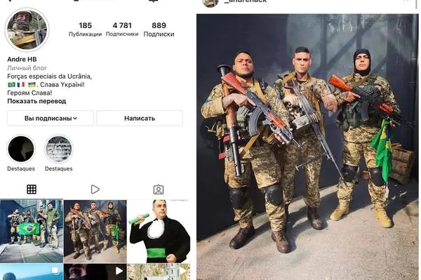 Ele publicou imagens do perfil do Instagram de Leanderson Paulino, que tem mais de 41 mil seguidores e diz ser brasileiro. Ele também conta que foi policial penal e bombeiro em diferentes países. Além da conta aberta no Instagram, mantém canal no Youtube com vídeos dele na Ucrânia, sempre com uniforme militar, carregando ou desmontando e montando armas.