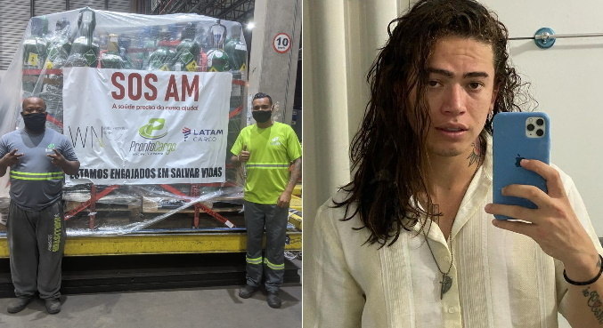 Whindersson também mobilizou três aeronaves para fazer o transporte de respiradores até Manaus: “Galera, meu irmão Marcos que mora em Manaus vai cuidar de distribuir nos hospitais pequenos e nos interiores que também estão precisando”.