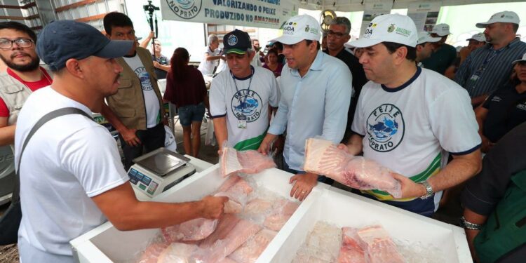 Pescado – Antes da solenidade no CPA Norte, o governador Wilson Lima visitou a quarta edição do programa “Peixe no Prato”, que ofertou cerca de três toneladas de peixes a preços acessíveis para a população do Mutirão. O programa, além de incentivar o pequeno produtor rural amazonense, que vende o seu produto direto para o consumidor, também é uma política de garantia da segurança alimentar da população em situação de vulnerabilidade social.