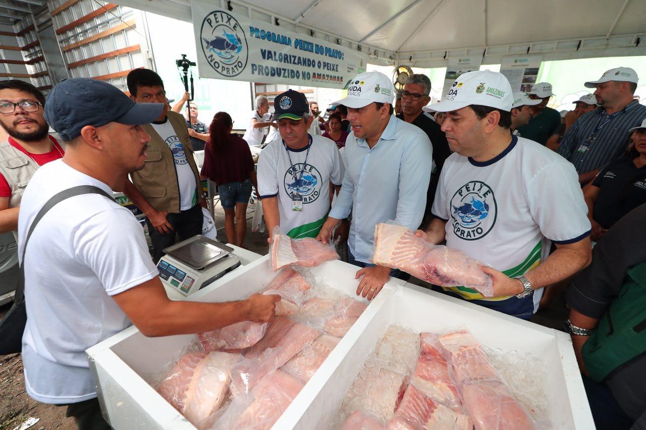 Pescado – Antes da solenidade no CPA Norte, o governador Wilson Lima visitou a quarta edição do programa “Peixe no Prato”, que ofertou cerca de três toneladas de peixes a preços acessíveis para a população do Mutirão. O programa, além de incentivar o pequeno produtor rural amazonense, que vende o seu produto direto para o consumidor, também é uma política de garantia da segurança alimentar da população em situação de vulnerabilidade social.