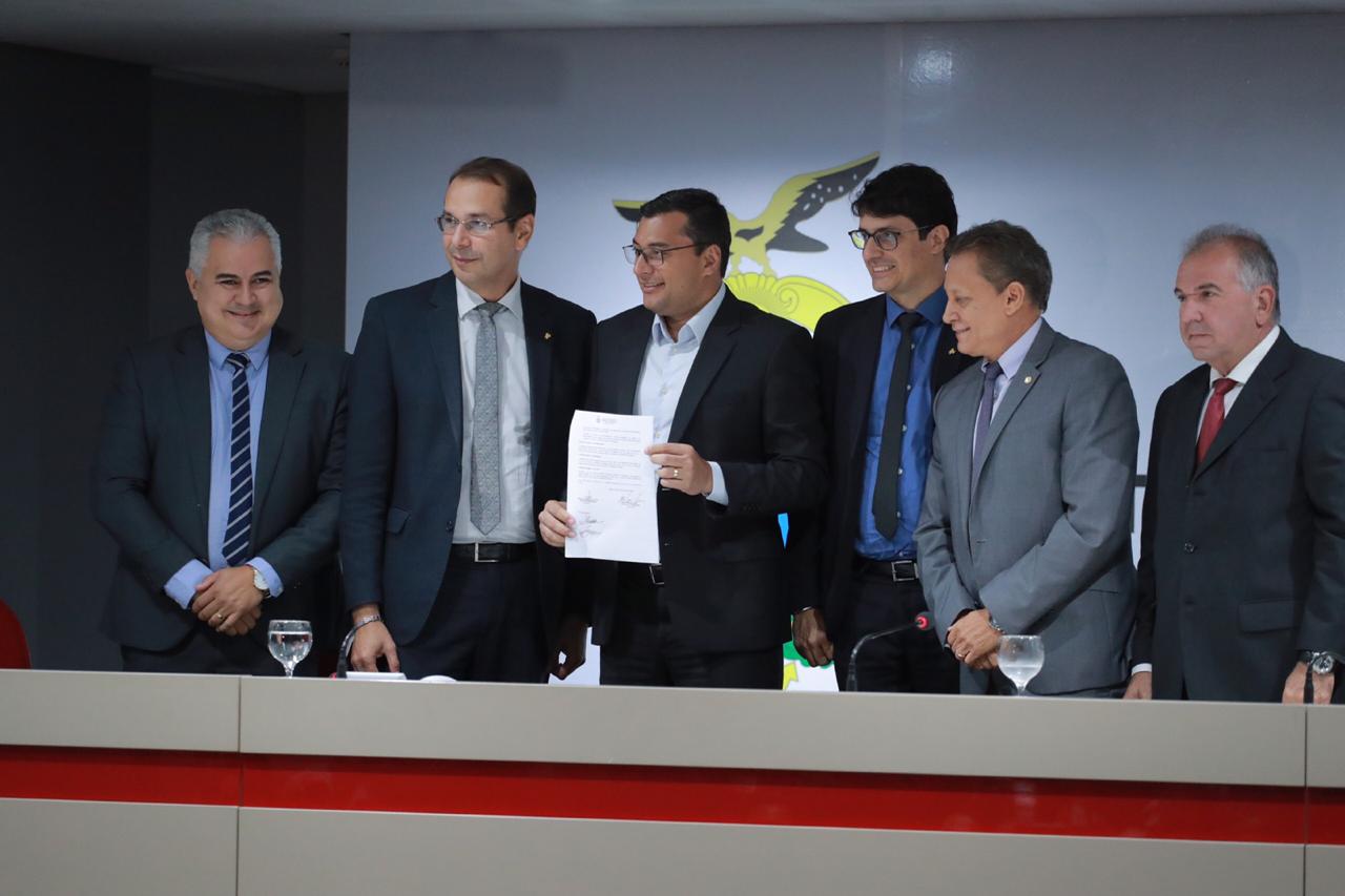 Manaus – AM| O governador Wilson Lima assinou, nesta terça-feira (03/03), na sede do Governo do Amazonas, um protocolo de intenções com o Banco da Amazônia para aplicação de recursos que estimulem o desenvolvimento de projetos sustentáveis no Estado do Amazonas. Para 2020, o banco disponibiliza R$ 1,75 bilhão para investimentos.