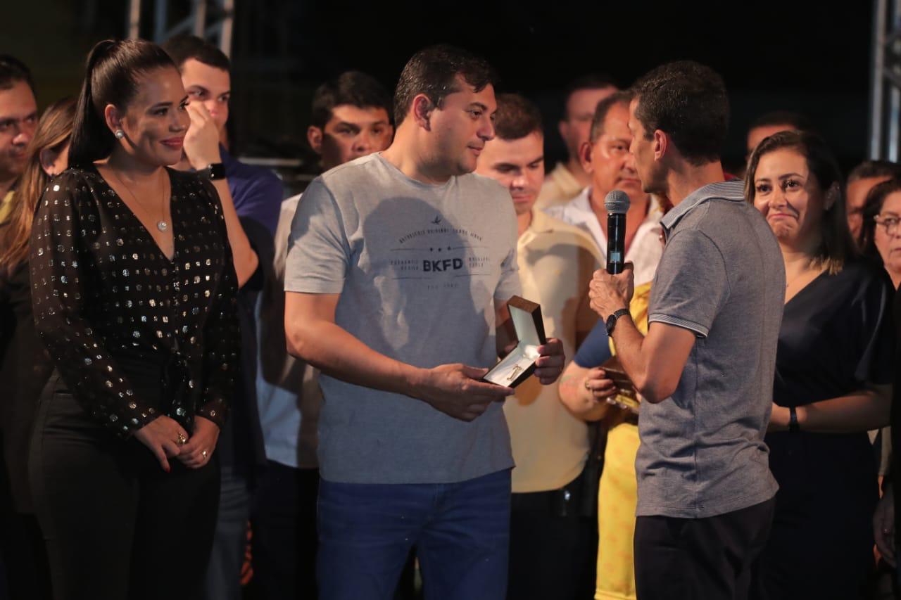 Cidadão de Maués – O governador Wilson Lima recebeu, ainda, o título de cidadão de Maués das mãos do prefeito Júnior Leite.