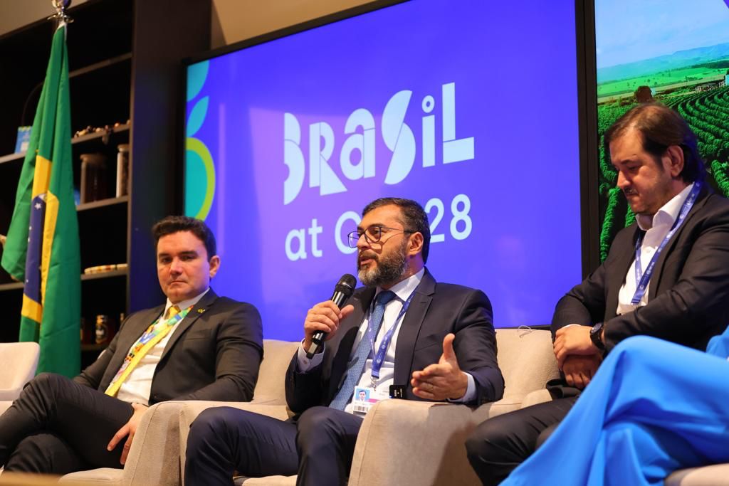 DUBAI – Em sua primeira agenda oficial na 28ª Conferência das Nações Unidas sobre Mudanças Climáticas, neste sábado (02/12), o governador Wilson Lima ressaltou o desafio do Brasil de transformar a comercialização de créditos de carbono em benefícios para a população. Durante painel que contou com a participação do ministro do Turismo, Celso Sabino, o governador apresentou iniciativas do Estado voltadas para a área ambiental, além do saneamento básico e acesso à água tratada.