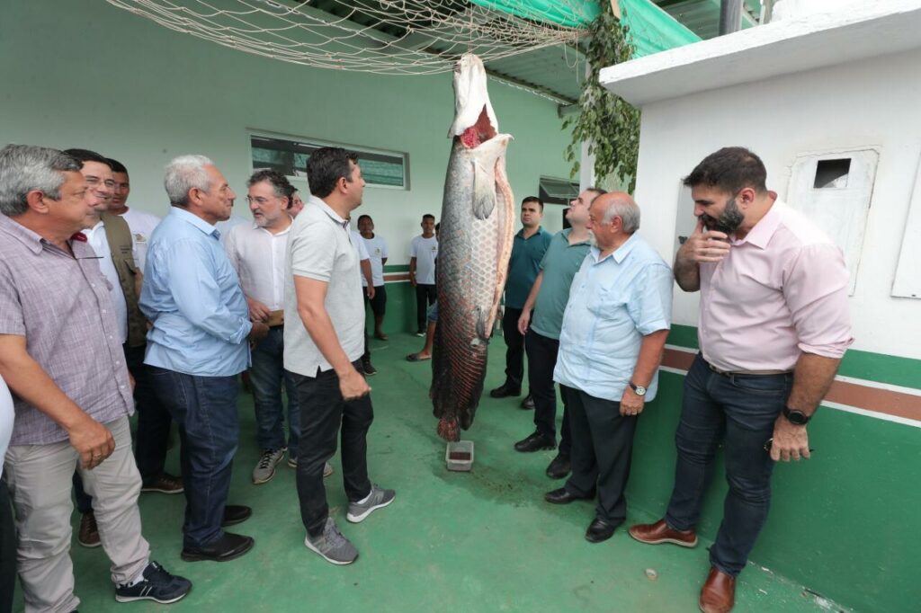“Isso aqui é um exemplo de desenvolvimento sustentável, que tanto se propaga mas que, na prática, poucas pessoas conseguem dizer efetivamente o que é. Há um discurso mundo afora falando sobre isso. Esse daqui é um exemplo de manejo, é um desenvolvimento sustentável, porque aqui em alguns lagos são distribuídas cotas para a captura desse pirarucu, mas com o compromisso de que ali fica pelo menos 70% do que está naquele lago e aí, daqui um período de 10 meses a um ano, é que os pescadores voltam ali para capturar esses animais”, afirmou o governador.