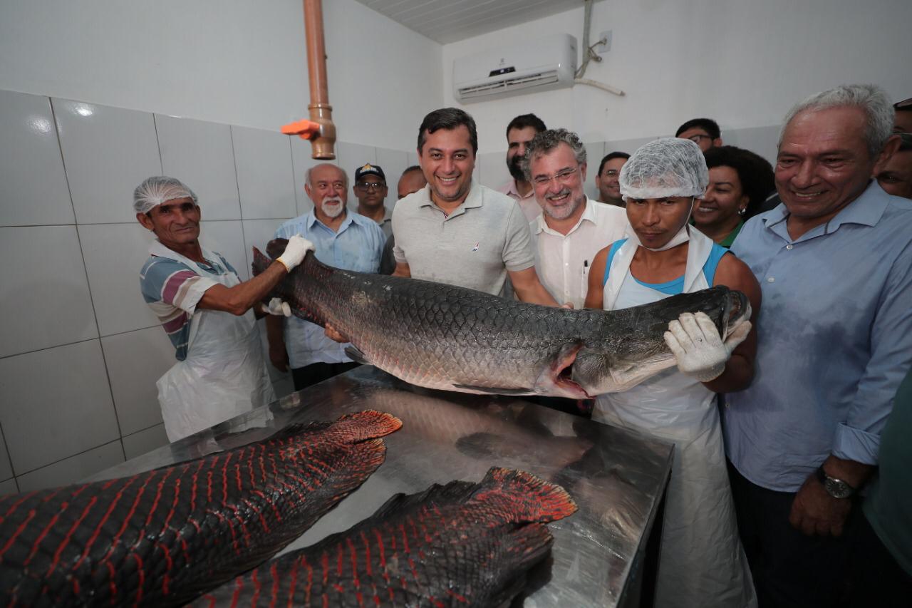 “Isso aqui é um exemplo de desenvolvimento sustentável, que tanto se propaga mas que, na prática, poucas pessoas conseguem dizer efetivamente o que é. Há um discurso mundo afora falando sobre isso. Esse daqui é um exemplo de manejo, é um desenvolvimento sustentável, porque aqui em alguns lagos são distribuídas cotas para a captura desse pirarucu, mas com o compromisso de que ali fica pelo menos 70% do que está naquele lago e aí, daqui um período de 10 meses a um ano, é que os pescadores voltam ali para capturar esses animais”, afirmou o governador.